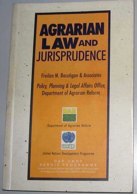 “The evolution of institutional theory serves as an important backdrop to this handbook entitled “Agrarian Law and Jurisprudence.” We are faced with numerous challenges to the effective and efficient implementation of agrarian reform in the Philippines, and it is best that we go back to the fundamental law from which the entire program derives: RA 6657, or the CARL. xxx The importance and significance of this handbook goes much further though. Professor Froilan Bacuñgan of the Study Team, and Assistant Secretary Fred Peñaflor of our Policy, Planning and Legal Affairs Office have worked together to bring us a book that challenges some of the misconceptions in the popular interpretation of law. The issue of retention limits, the time frame prior to the sale of awarded lands, and the ticklish issue of “mother” or joint titles are discussed thoroughly, with new insights based upon the over 10-year experience in implementing the law.”